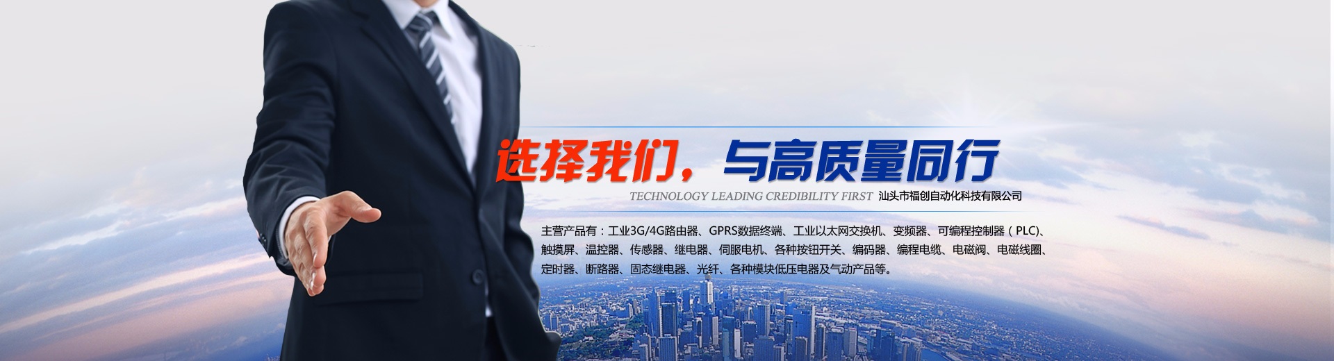 汕頭市福創(chuàng)自動(dòng)化科技有限公司是一家集自動(dòng)化元件的代理銷售與維修、自動(dòng)化設(shè)備設(shè)計(jì)制造、自動(dòng)化工程安裝改造、機(jī)電工程安裝改造、自動(dòng)化機(jī)械設(shè)備設(shè)計(jì)與制造的企業(yè)。 主營(yíng)產(chǎn)品有:工業(yè)3G/4G路由器、GPRS數(shù)據(jù)終端、工業(yè)以太網(wǎng)交換機(jī)、變頻器、可編程控制器(PLC)、觸摸屏、溫控器、傳感器、繼電器、伺服電機(jī)、各種按鈕開(kāi)關(guān)、編碼器、編程電纜、電磁閥、電磁線圈、定時(shí)器、斷路器、固態(tài)繼電器、光纖、各種模塊低壓電器及氣動(dòng)產(chǎn)品等。